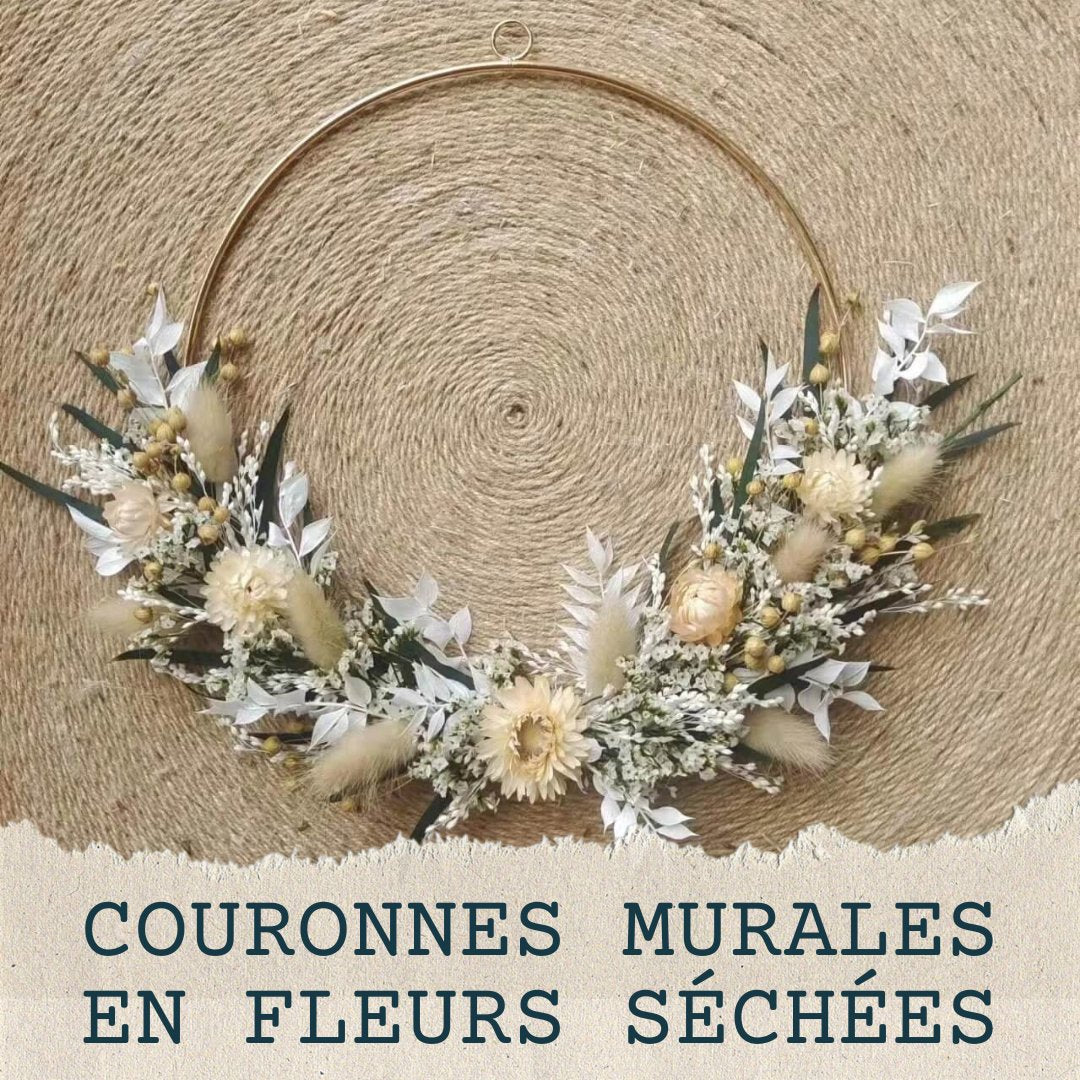Superbes Couronnes de Fleurs Séchées Bohèmes, Chics, Champêtres à prix doux pour...