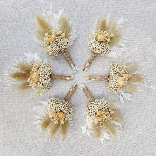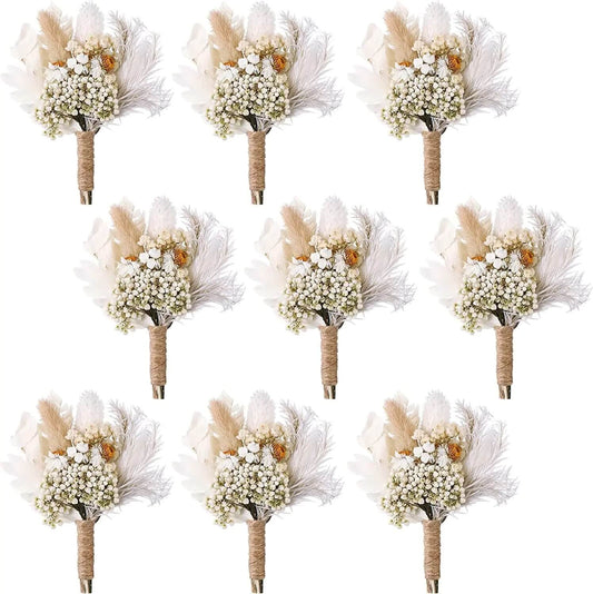 Boutonnières en Fleurs Séchées Bohème (8 pièces)
