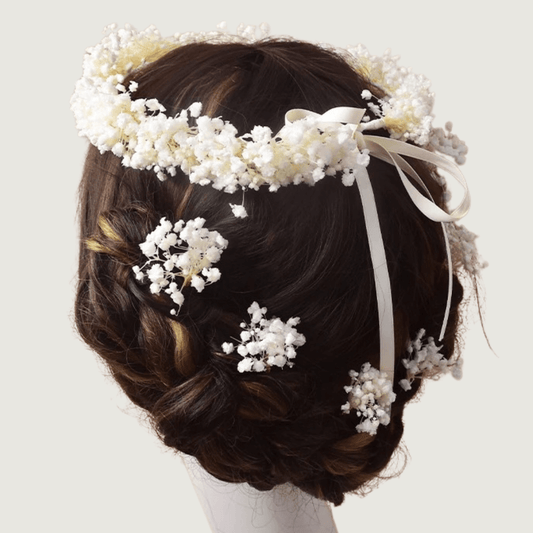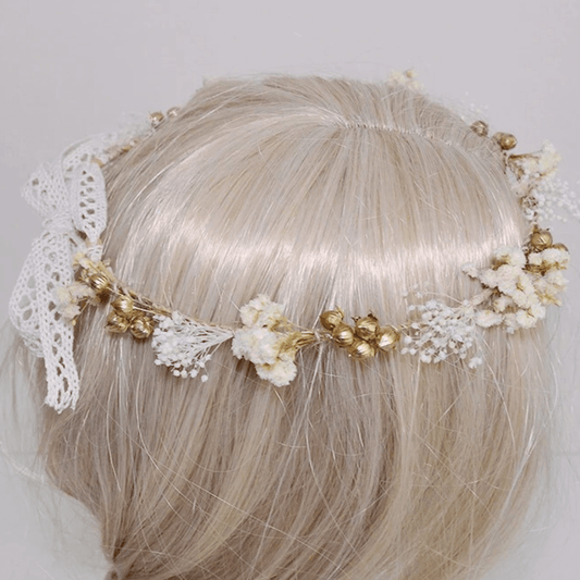Couronne de Tête Champêtre en Fleurs Séchée Gypsophiles Naturelles